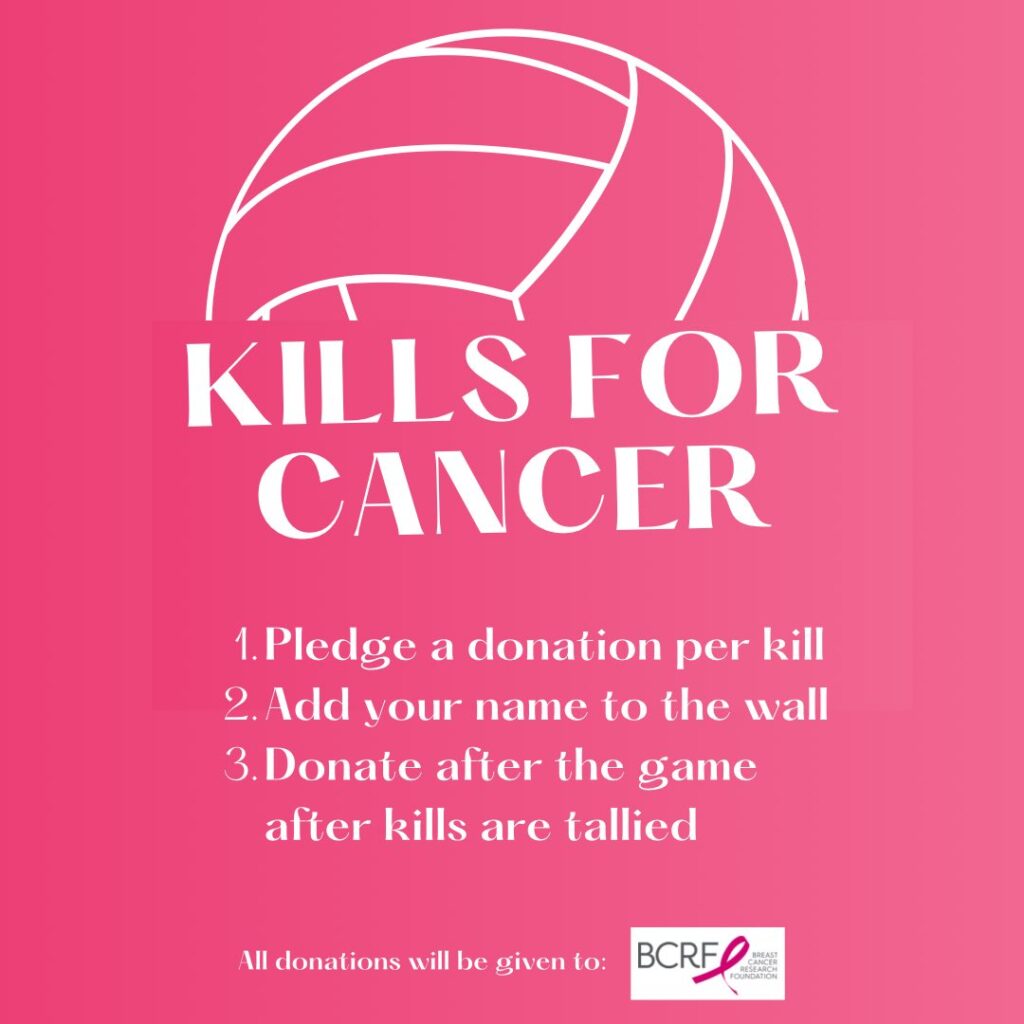 The excitement builds long before the first serve through social media posts, gym decorations, and even local newspaper coverage. But the centerpiece of the night is the beloved “Kills for Cancer” pledge drive, a spirited fundraiser that turns every spike into support for the Breast Cancer Research Foundation.