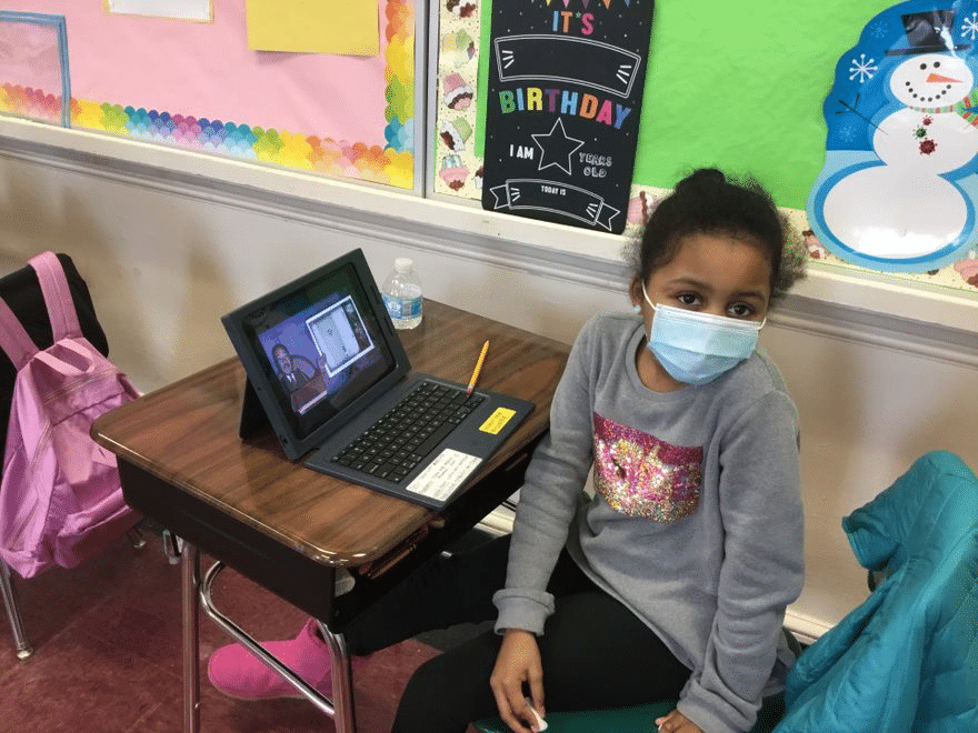 - Clara H. Carlson School third grade student Deiondre Spencer tuned into the virtual assembly.