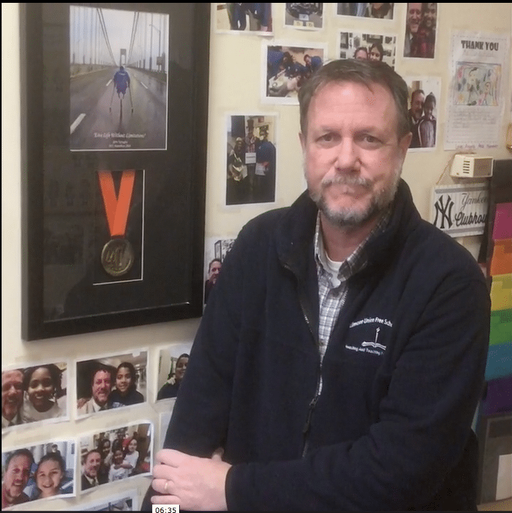 Images and videos were then featured, showing how the Clara H. Carlson school community has been inspired by Dr. King to serve others. Principal Stacia Walfall and her son, Kaden, shared how they want to help others become aware of Type 1 diabetes. Kaden discussed how he works as a youth ambassador with the Juvenile Diabetes Research Foundation. Photos of Assistant Principal Natalie Nelson and her son donating their time to the Jack and Jill Nassau County Chapter were also included, and Assistant Principal Richard Mansfield talked about his work with the Achilles Foundation to help those with special needs. Additionally, video clips were played of teachers and students talking about how they’ve served the local community.