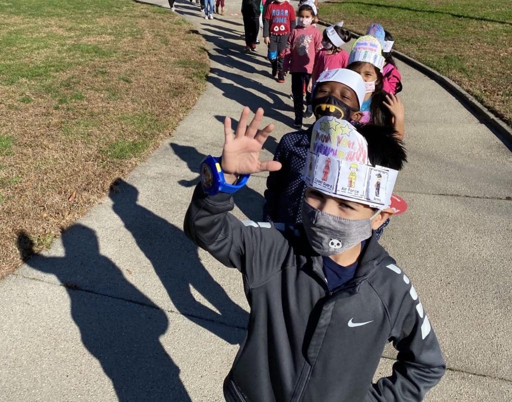The students in Samantha Tasso and Heather Tollin’s classes created Veterans Day crowns that showcased the different branches of the military. Because the students worked so hard and had fun learning about Veterans Day in their classrooms, they were able to enjoy part of the school day outside proudly wearing their Veterans Day crowns.
