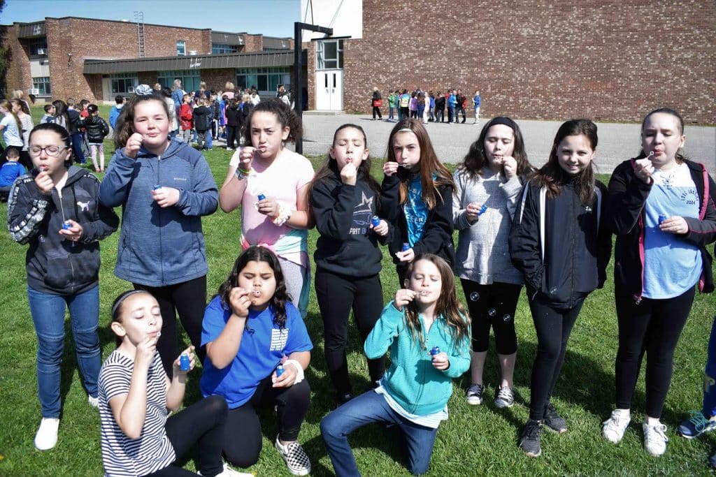 Connetquot: Staff and students blow bubbles to support autism awareness
