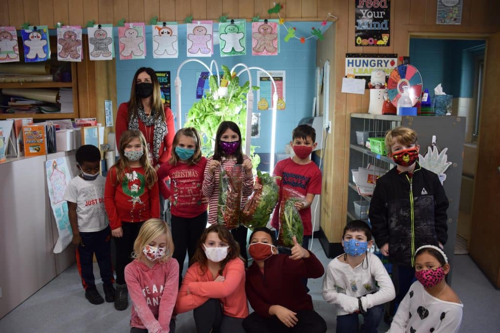 Ms. Pisani explained that several tower gardens were constructed in K-5 classrooms to remind students of the importance of healthy eating and to teach them how to take care of their minds and bodies by eating plant foods. After the plants are fully grown, students and teachers harvest the plants and typically enjoy healthy salads. However, this holiday, the lettuces, chard, basil, kale and other healthy greens are being collected by the district’s homeless liaison to distribute the harvest to needy families.