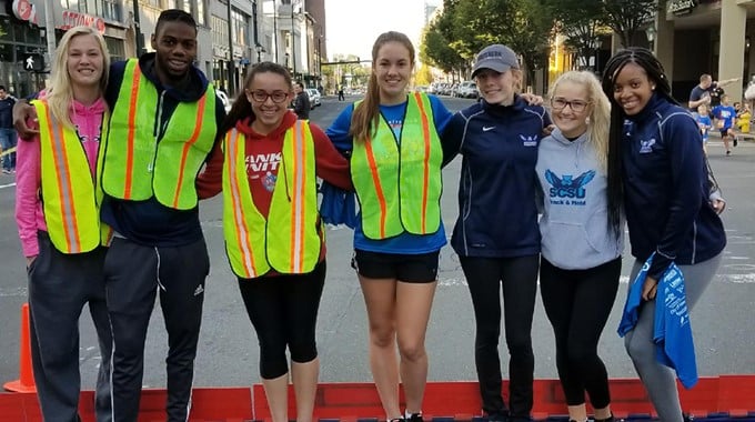 NEW HAVEN, Conn. – Members of the Southern Connecticut State University men’s and women’s cross country and track and field teams were on hand to assist at the Faxon Law New Haven Road Race on Labor Day. The team assisted with an array of duties for the annual event.