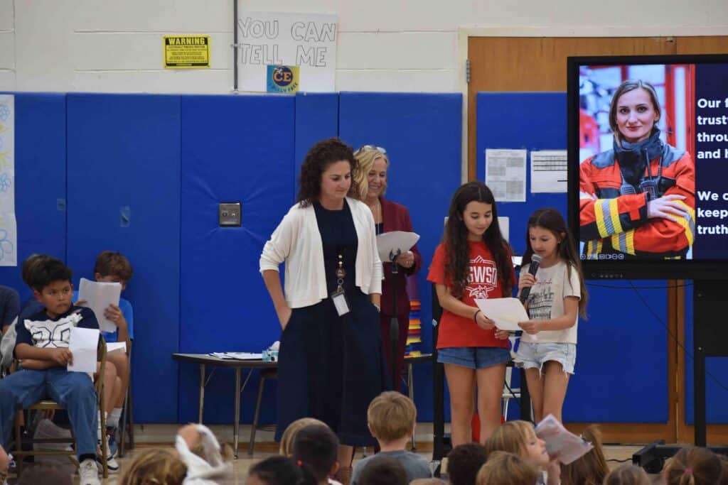 Highlighting the school’s Tucker Core Value for the month of September, “trustworthy,” Principal Brennan introduced honored local first responders, including police, fire, EMS, nurses, security staff, public safety dispatchers, veteran and emergency volunteers. Each group was recognized by students through heartfelt presentation and a token of gratitude in the form of crafted cards and pins.