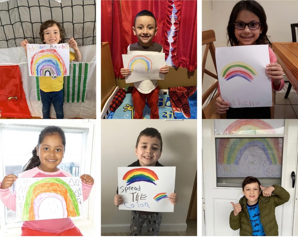 Photo caption: Students, Adrian Gadea Shapovalov, Jefferson Mojica Rivas, Athena Thomaidis, (Top row from L to R) Liz Ruano, Daniel Boatman, and David Youssef (Bottom row from L to R) in Ms. Alyson Dellavecchia’s kindergarten and first grade class at Deasy Elementary School created rainbow artwork to spread hope as they learn from home due to school closures from the coronavirus.