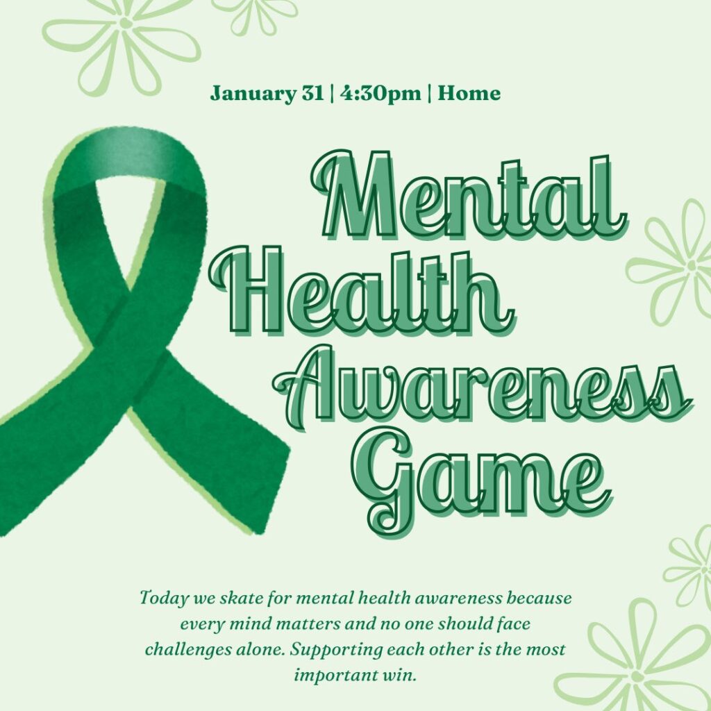Earlier in the winter, the team hosted an Active Minds Mental Health Awareness game, bringing together players, students, and supporters to promote conversations around mental wellness and the importance of creating a supportive school environment. The event helped foster understanding while encouraging students to look out for one another both on and off the ice.
