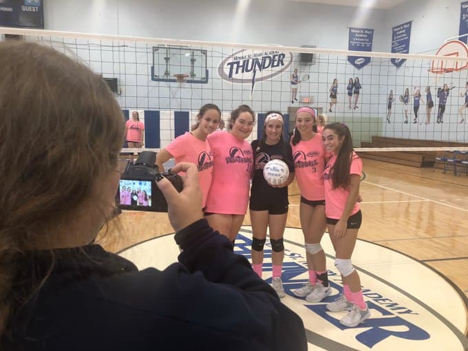 We had about 28 athletes participate. They spent several hours at the gym decorating and baking. We raised money for breast cancer awareness by have a baked goods sale at our match. We try to do a Dig Pink event every year.