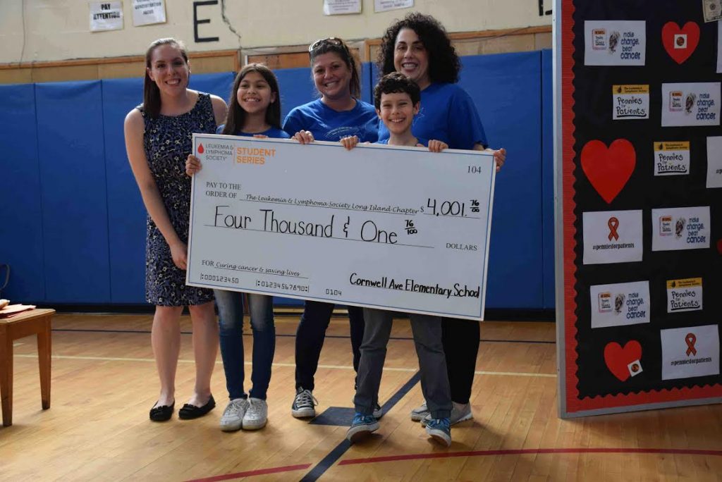 Students, staff and administrators of Cornwell Avenue Elementary School in the West Hempstead School District raised more than $4,000 for the Leukemia & Lymphoma Society through their Pennies for Patients fundraiser.