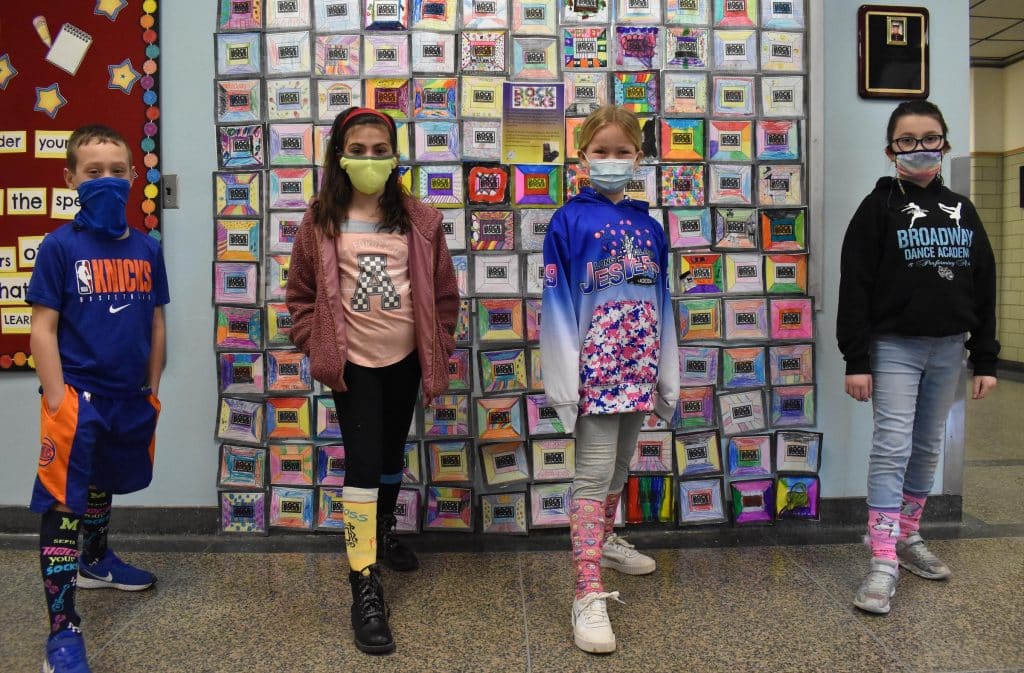 1: East Lake Elementary School third graders got creative with their footwear for Rock Your Socks Day on March 22 in observance of World Down Syndrome Day. A Rock Your Socks quilt was created near the main lobby with patches designed by students.