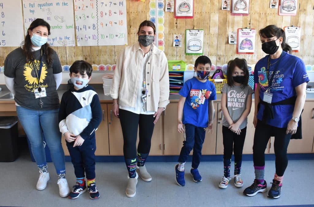 Socks with colorful stripes, cartoon characters and pictures of food adorned the feet of students at East Lake Elementary School in the Massapequa School District on March 22 to mark World Down Syndrome Day. Mismatched socks and custom designed Massapequa Rock Your Socks footwear were also popular choices.