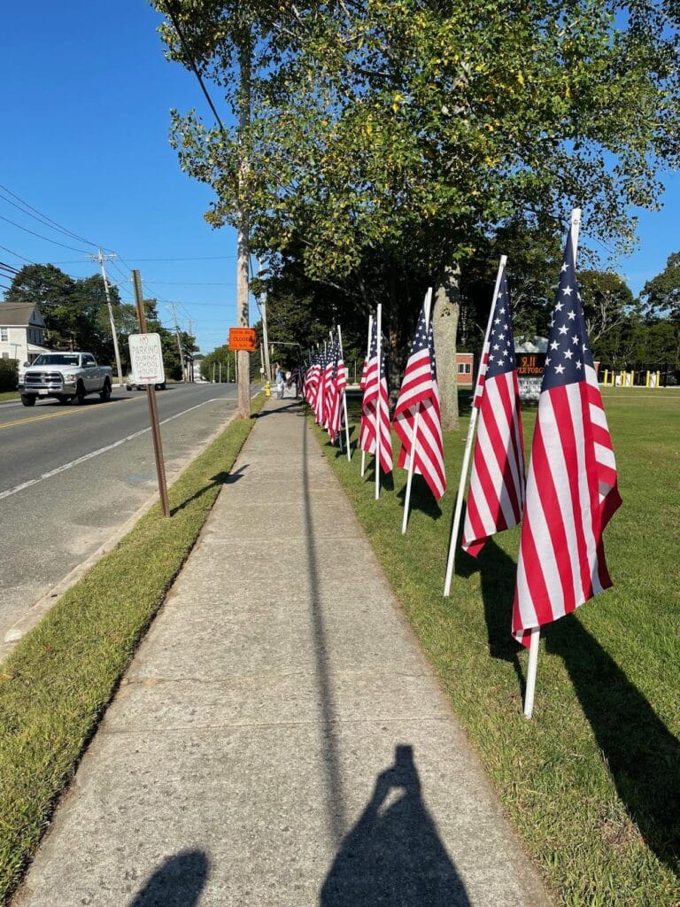 B: American flags lined the perimeter of Eastport Elementary School as part of the school’s annual Waves of Patriotism fundraiser.