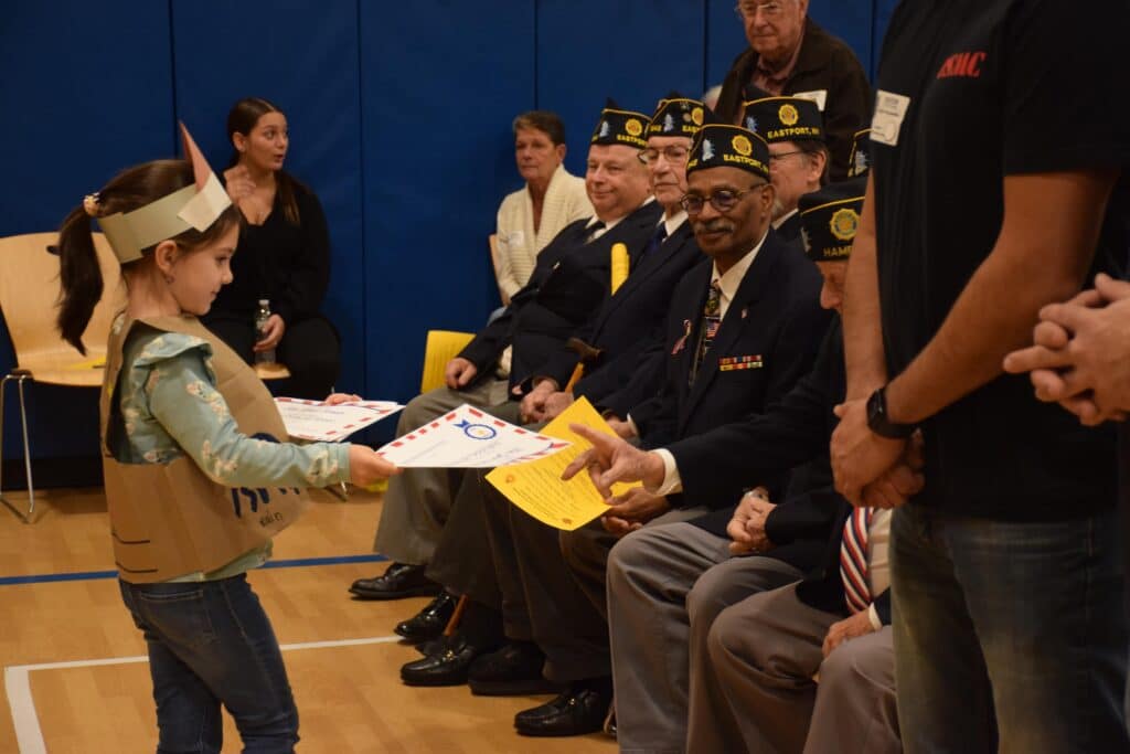 B: Select Tuttle Avenue Elementary School students presented certificates of appreciation to veterans who were guests at the annual Thanksgiving celebration.
