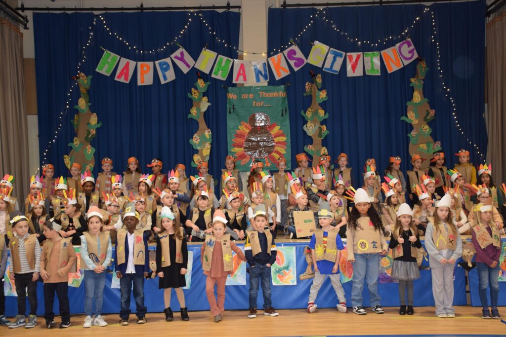 At Tuttle Avenue Elementary School students participated in a Thanksgiving celebration, which recognized and honored all essential workers in their school and the veterans in their community. It was a morning of poetry and song as each of the grade’s classrooms donned turkey and pilgrim headdresses and took to the stage to perform a variety of Thanksgiving holiday music and to recognize the important work that the faculty and staff do each day.