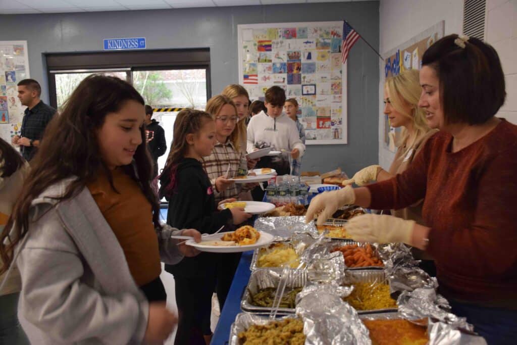 At Eastport Elementary School, sixth grade students attended a Thanksgiving feast get-together. They ate their turkey and fixings, prepared by the PTO, generous parents and teacher George Marino. “I’m grateful for” placemats were also created by the students and included a family photo and a short description for which they are most thankful.