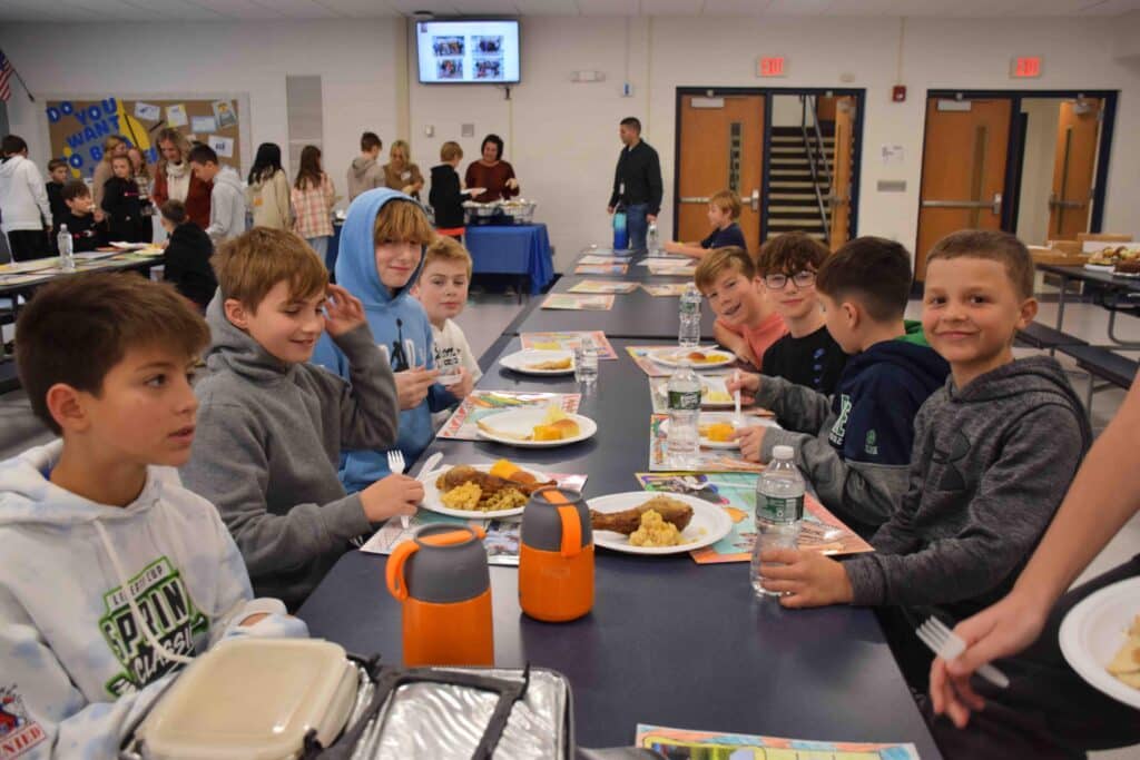 D: Eastport Elementary School sixth graders enjoyed a Thanksgiving feast provided by parents and the PTO.