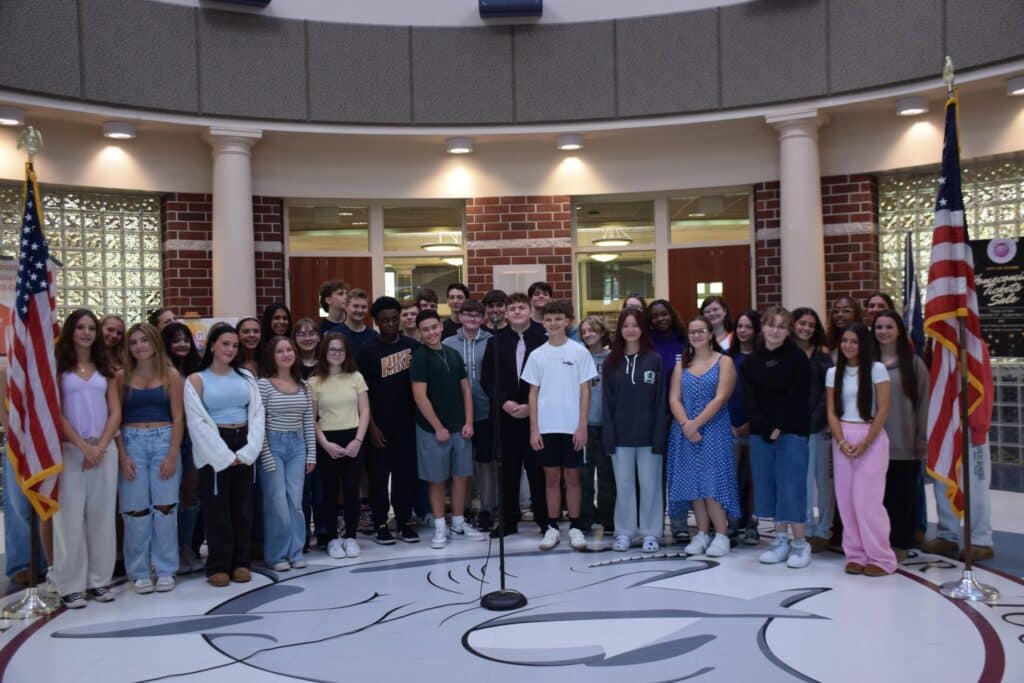 Prior to the stair climb, the concert choir, under the baton of teacher Daniel Graf, expertly sang, “God Bless America,” streamed for students throughout the building. Hayes, along with Principal Salvatore Alaimo, also expressed comments about this special remembrance.