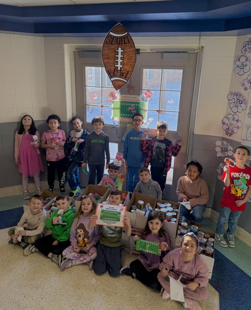 Photo caption: South Street School students collected a total of 367 cans of food for Angels of Long Island during the annual Souper Bowl.