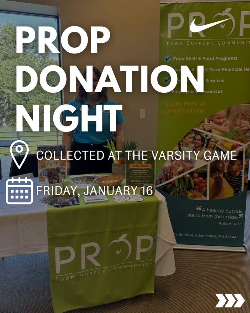 On January 16, the Eagles hosted PROP Donation Night during their varsity game, inviting fans to support families in need by donating non-perishable food items. The effort brought together students, families, and community members around a shared goal—helping neighbors facing food insecurity.
