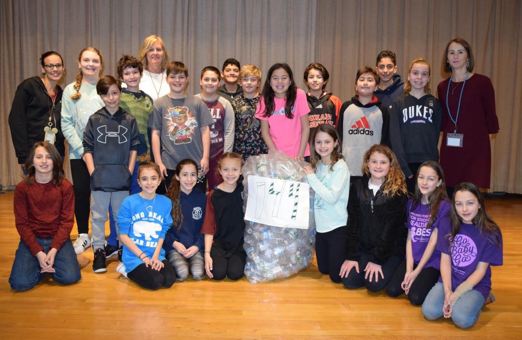 The school is supporting a different cause each month. In February, students collected 4,000 bottles and donated $200 to the Ronald McDonald House. The March charity is the March of Dimes, an organization that benefitted Dinkelmeyer fifth-graders Lily Rubino and Hannah Rubino when they were infants. The girls were part of a group of fifth- and sixth-graders who presented at a schoolwide assembly on March 2. The students talked about the importance of charity, which is a key part of the district’s mission statement, and encouraged their classmates to bring in water bottles and even soda cans from home.