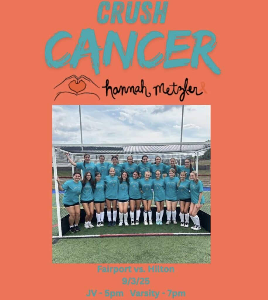 The Fairport Field Hockey program dedicated their recent game to the memory of Hannah Metzler, a beloved teammate who lost her battle with cancer in 2014. Before her passing, Hannah and her brother founded the Crush Cancer Concert Series, raising funds to support others in their fight against cancer.