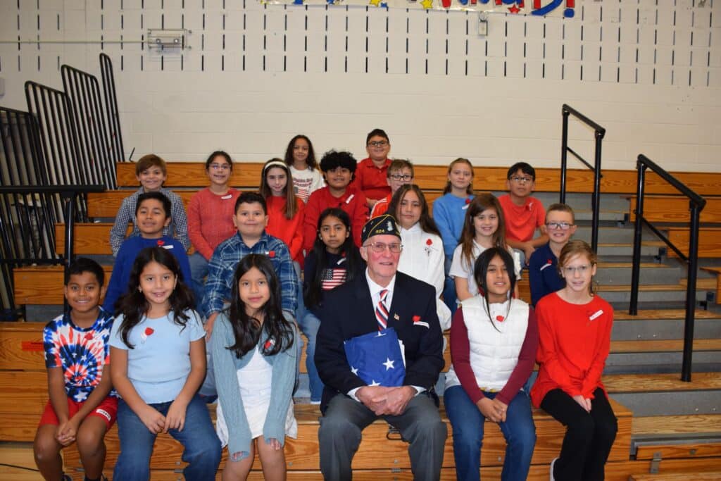 Photo caption: Hampton Bays Elementary School fourth graders celebrated Veterans Day and honored veteran Don Veeck during a ceremony on Nov. 7.