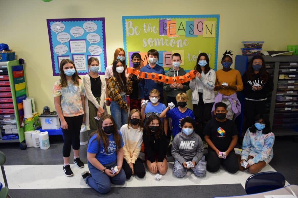 - Floral Park-Bellerose School sixth graders created an orange paper chain on Unity Day.