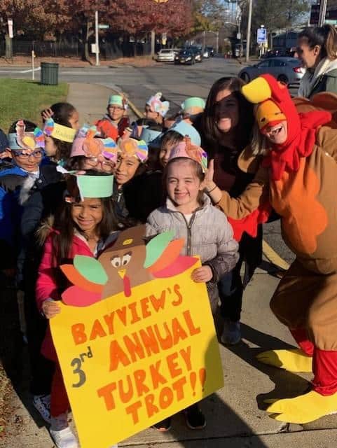 1&2: Bayview Avenue School students and staff marched around the building for its annual turkey trot.