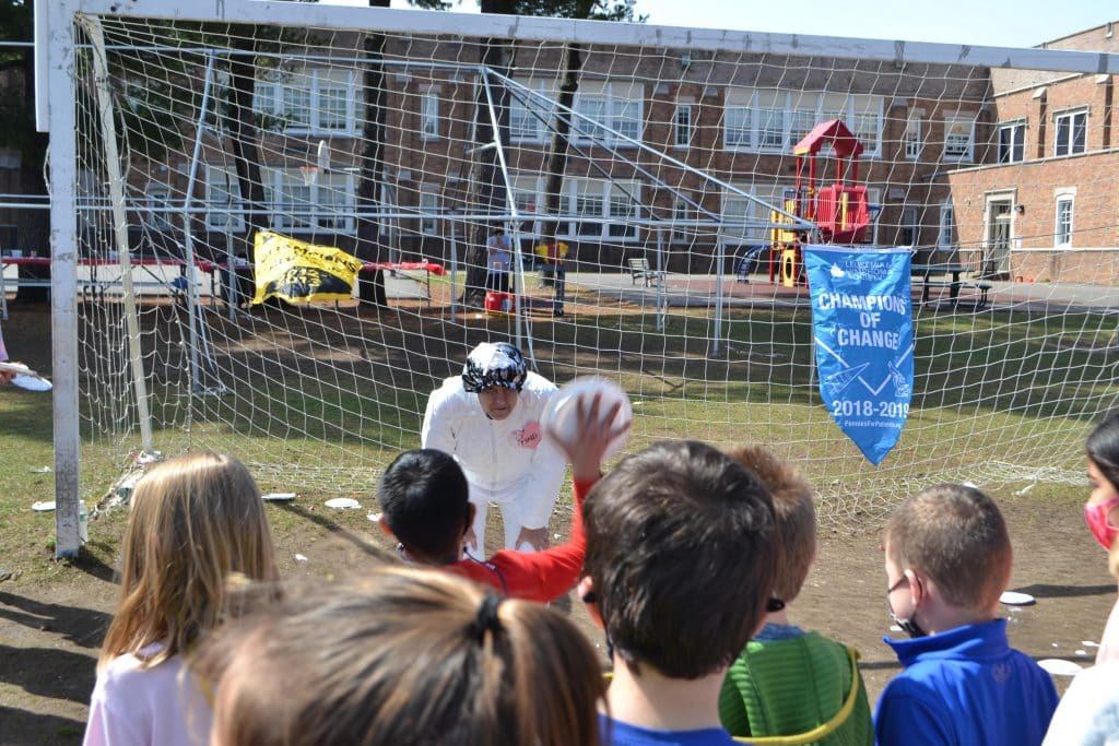 The project concluded with a “Pie the Principals” event on March 25, facilitated by Ms. McCarthy and student ambassadors and starring Principal Linda Norton and Assistant Principal Keri Hand. The top earning classes from each grade had the opportunity to toss whipped cream pies at their building leaders, who wore protective suits and caps. The winners were Destiny Braddick’s fifth class with a donation of $2,374.42, Kelly Donnelly’s fourth grade class with a $1,187.85 contribution, Marissa Moscato and Jacob Boulay’s class with $1,562.11 in proceeds and Christine Becconsall’s second grade class, which garnered $796.11. Runner ups Amber Degnan and Corina Tesoriero’s class, Kevin Dolan’s class, Elizabeth Wills’ class and Melissa Coyne’s class were also invited to try out their pie throwing skills.