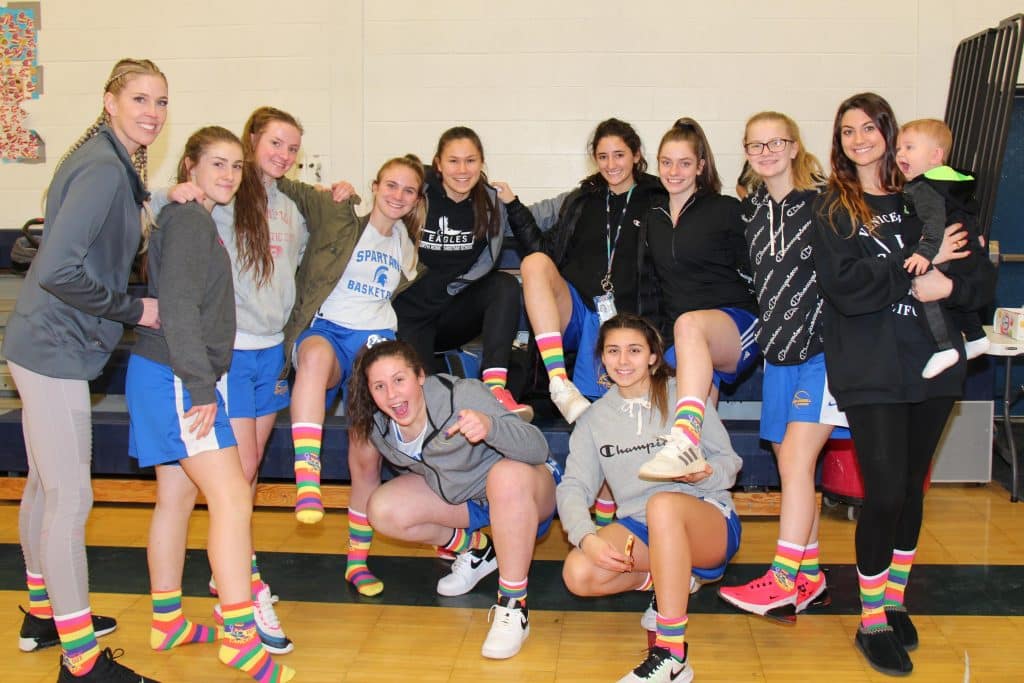 At their games on Jan. 29, the girls modified basketball teams raised awareness and funds for Sock Out Cancer. The organization provides assistance to financially stressed cancer patients and their families for non-medical necessities such as food, transportation and housing, so patients can focus their energy on fighting cancer.