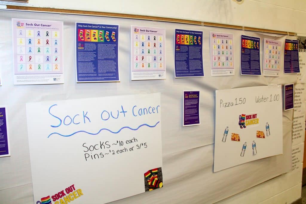 The players wore colorful Sock Out Cancer Socks during play, and raised funds through a sock, food and pin sale during the games. They also held a 50/50 raffle.
