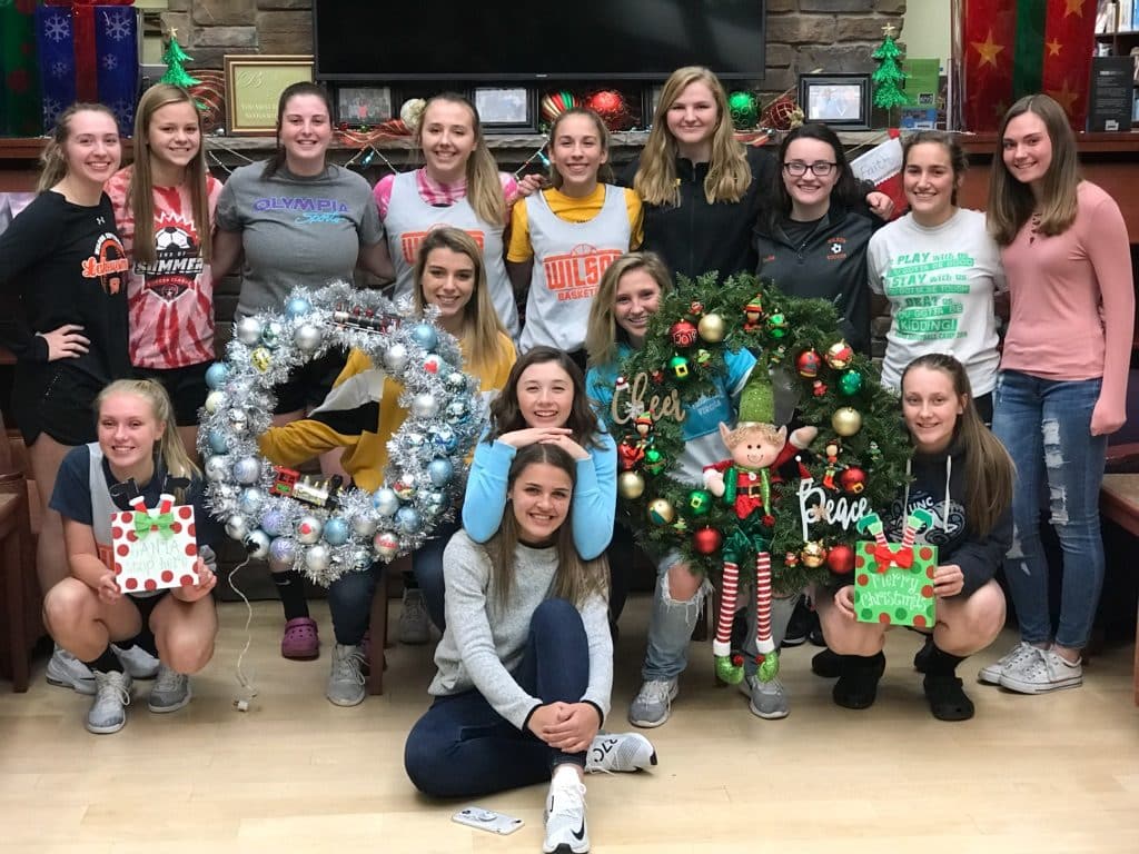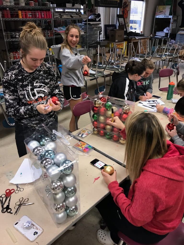 Girls Varsity Basketball decorates holiday wreaths for auction. Proceeds go to the children and families of the Child Life Development department of Buffalo’s Oishei Children’s Hospital.