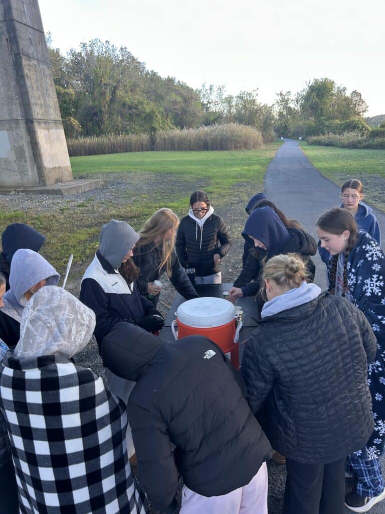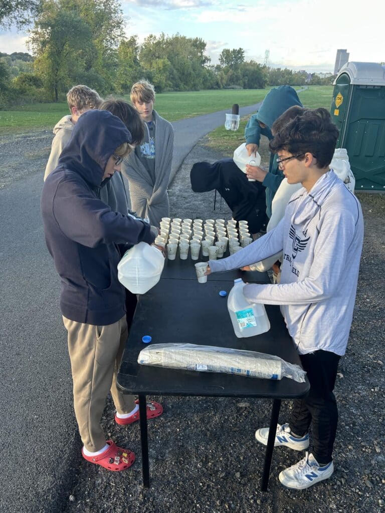 Each year, the Hudson Mohawk Road Runners Club invites groups to volunteer at the Hudson Mohawk Half and Full Marathon held over Columbus Day weekend. The Boys and Girls Cross Country programs have proudly participated since 2012, setting up tables, filling cups with water and Gatorade, and handing them out to runners during both races. The event has become a cherished team tradition and a meaningful opportunity for the athletes to give back to the running community that supports them year-round.