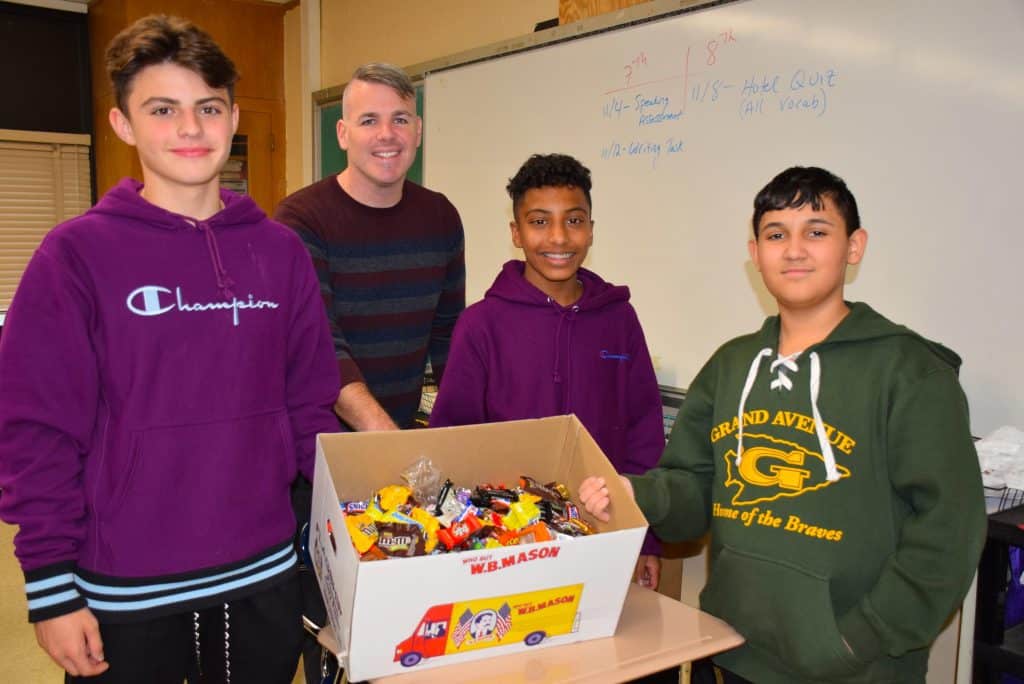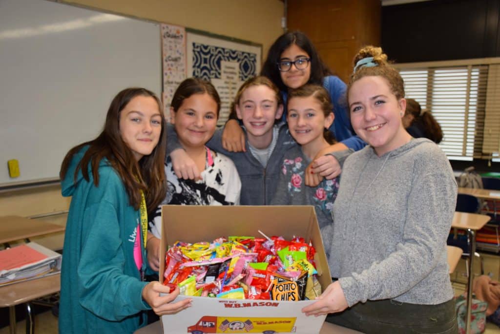 Students at Grand Avenue Middle School in the Bellmore-Merrick Central School District were asked to bring in any unopened sweets and treats the first week of November, and on Nov. 7, the Builders Club packaged it all up and readied the boxes for a shipment overseas.