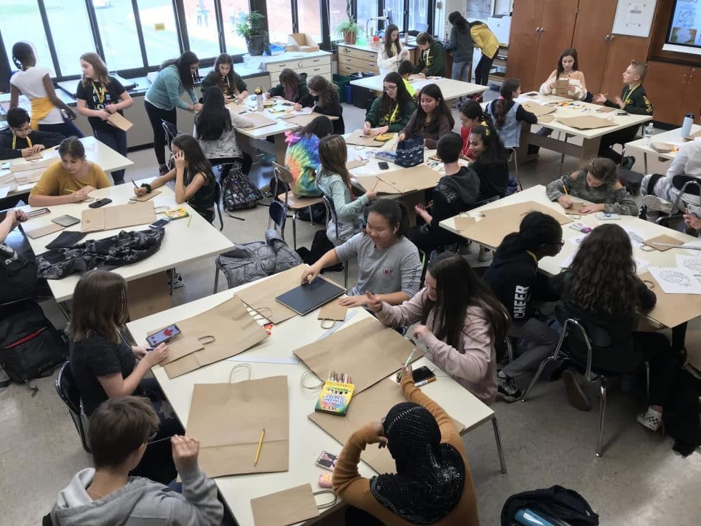 The Art Club at Grand Avenue Middle School has been busy decorating Thanksgiving bags for local families in need.