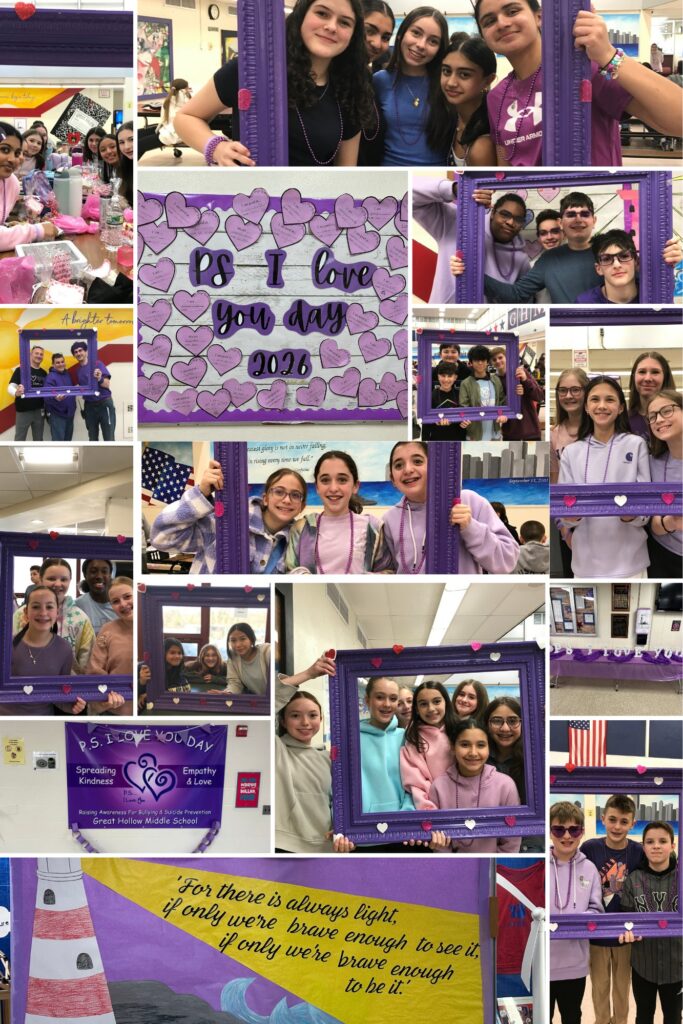 Students and staff at Great Hollow Middle School recently came together to participate in PS I Love You Day, a nationwide initiative focused on spreading kindness, raising awareness about mental health, and reminding individuals that they are never alone.