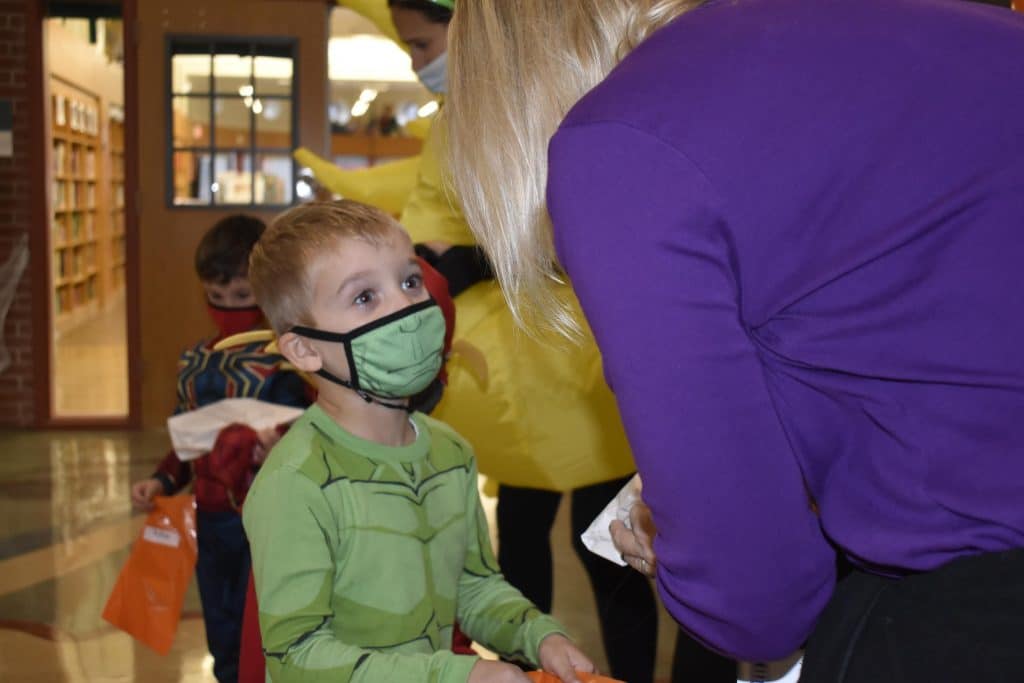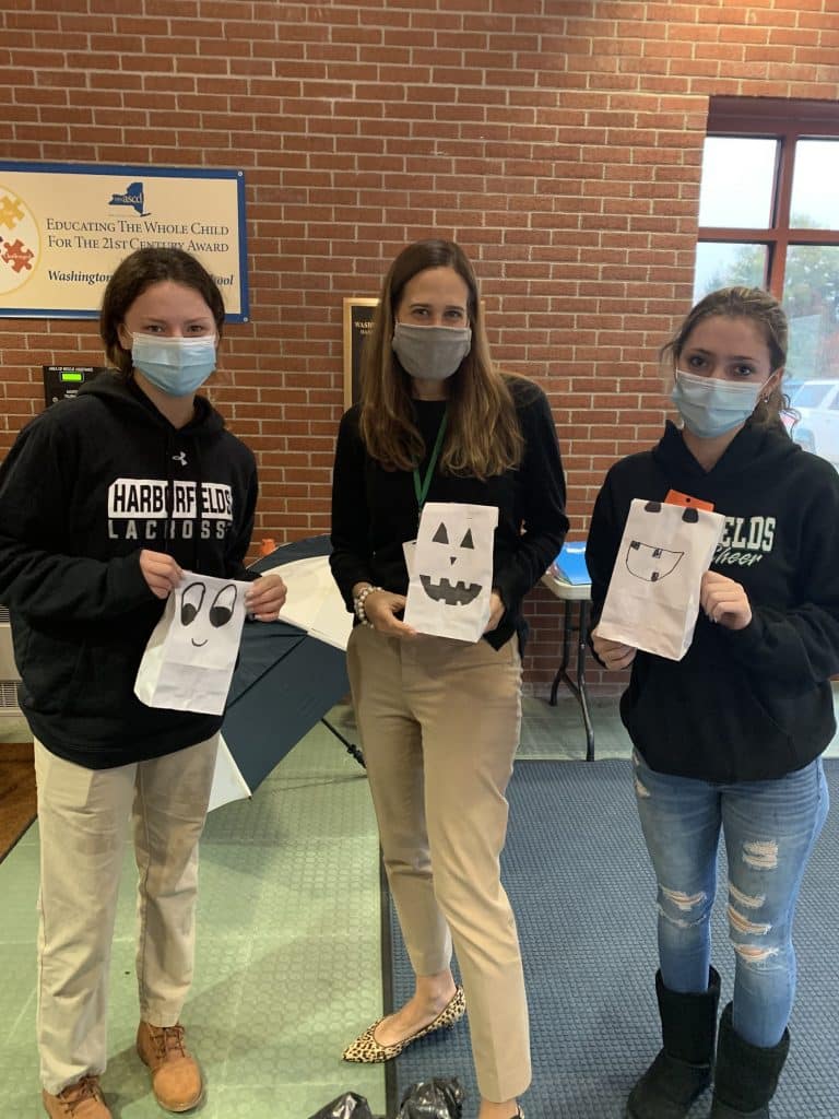 This year, in lieu of the high school’s annual Safe Halloween event, interact club members made over 1,200 goodie bags of Halloween-themed toys to share with elementary students at Washington Drive TJL. On Oct. 30, those students paraded through their schools’ decorated hallways, showcasing their costumes and participating in a non-edible trick-or-treat event.