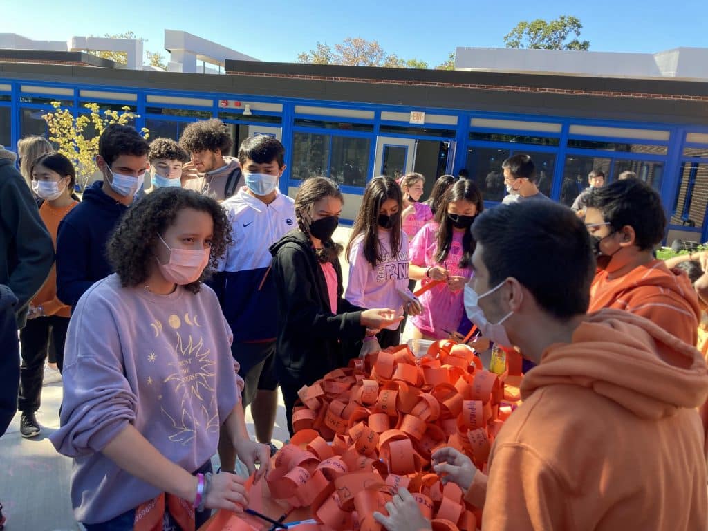 Students and staff members wore orange, wrote positive post-it notes that they adhered to lockers, spread positive affirmation stickers throughout the building, constructed an orange paper chain link of kind words and created inspiring sidewalk chalk artwork to promote the day’s important purpose. Music and laughter filled the courtyard on this wonderful Wednesday, and the message of bullying prevention was spread to all.
