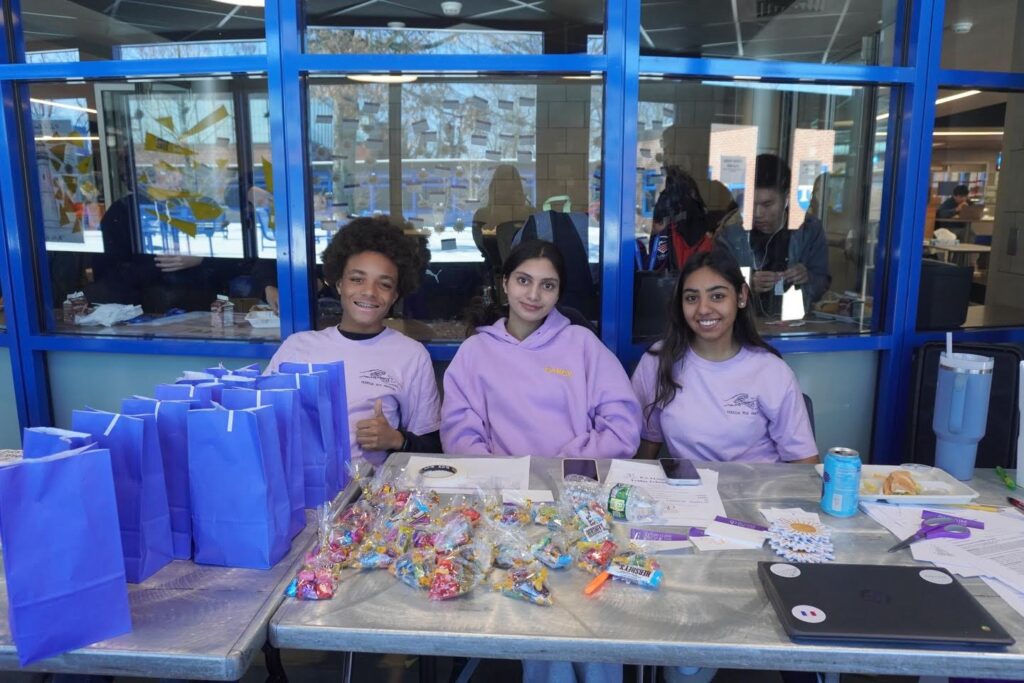 At Herricks High School, students wore purple and wrote uplifting messages on hearts displayed throughout the school. A table near the cafeteria, staffed by students, offered mental health resources and raised funds for suicide prevention causes.
