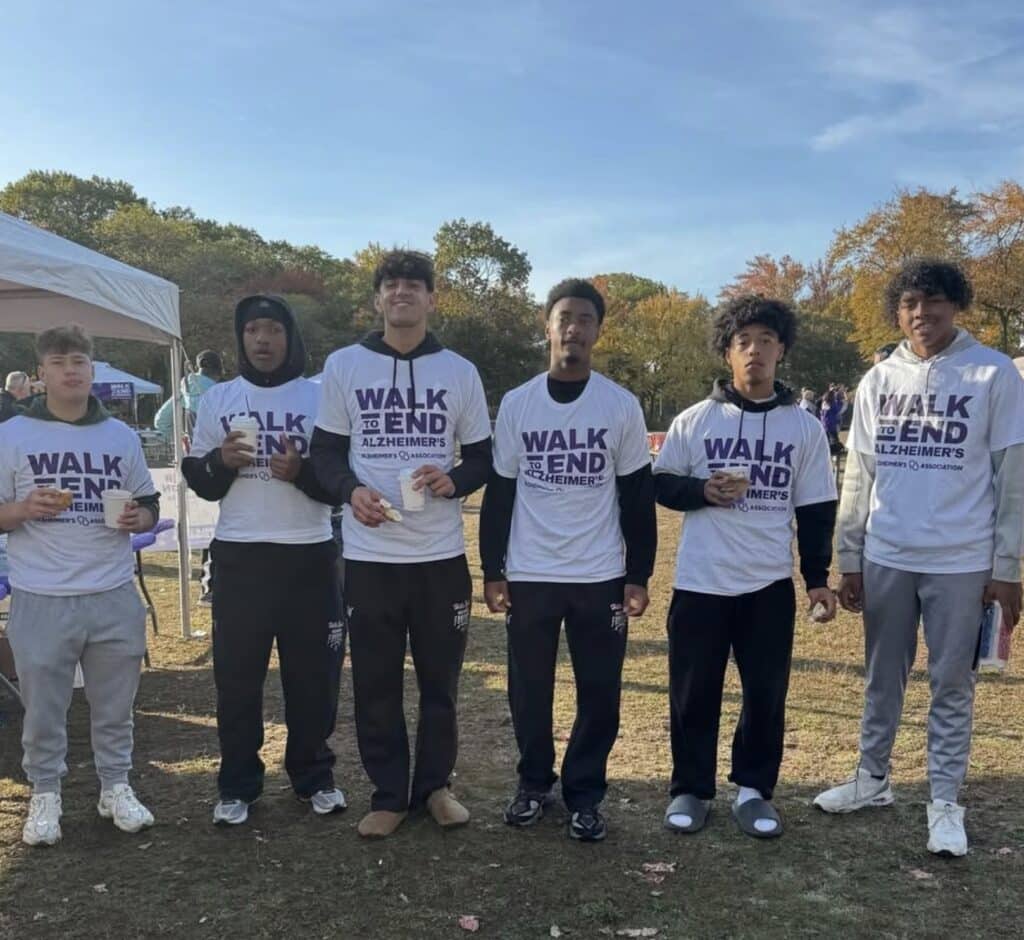 Hills East football players proudly participated in the Alzheimer’s Association Long Island Chapter Walk to End Alzheimer’s at Belmont Lake State Park in Babylon, New York.