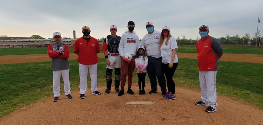 Andrew Alati was an Island Trees MS student who was killed in June, 2019, when he was struck by a car while riding his bicycle across Hempstead Turnpike. He was a MS baseball player at the time and our plan was to honor him in Spring, 2020. Unfortunately, the COVID pandemic cancelled our Spring season last year so we were only able to honor him this week at our first home opener baseball game since he, tragically, lost his life. We had his mother, father, sister, and brother throw out the first pitch. The ceremony went very well and it was attended by family, friends, and community members to honor him and his family.