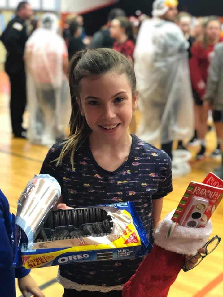 “It’s all anonymous (to us), and we want to keep it that way,” said Falkenbury, who raised more than $2,400 this year. “Hillary does almost all of the shopping, wrapping, gets them grouped and labeled and gives them to the guidance office, and it distributes them.”