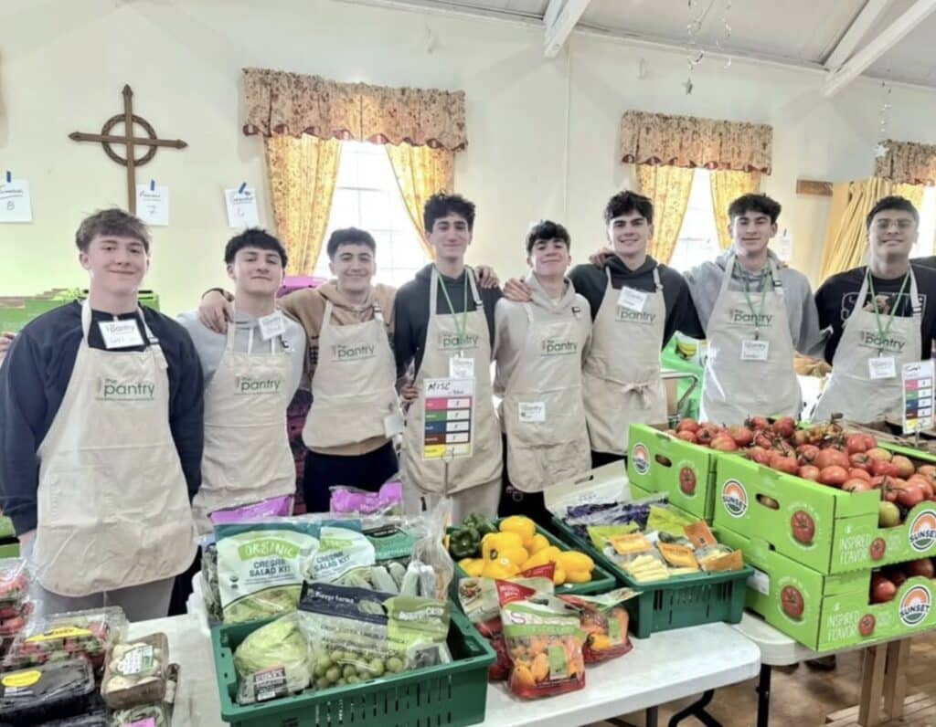 During their visit, the student-athletes helped distribute free, fresh produce to families across Northern Westchester, providing important food resources to community members in need. The players also assisted with restocking shelves, organizing inventory, and helping with cleanup, ensuring the pantry could continue serving families efficiently.