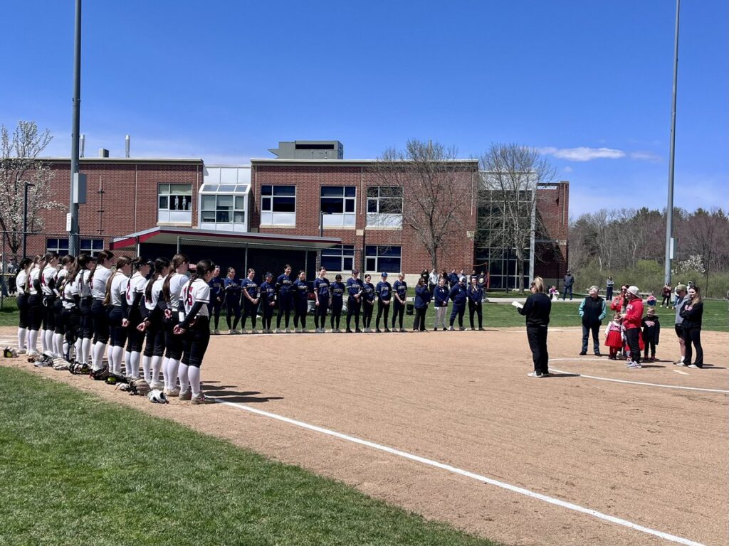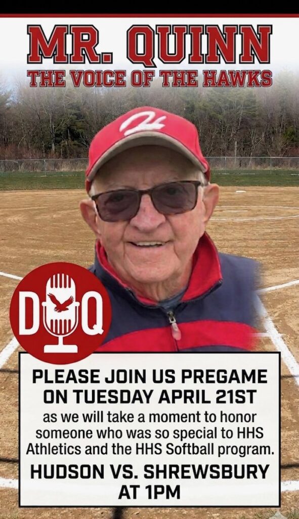 Before Game 2 against Shrewsbury, Coach Laura Bowen led a heartfelt tribute to Mr. Quinn, whose presence and passion were synonymous with Hudson athletics for many years. Known as a true pillar of the community, his voice and spirit left a lasting impact on generations of student-athletes, families, and fans.