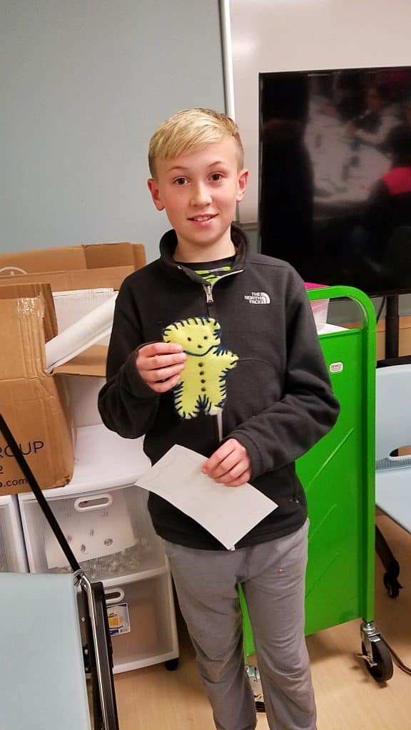 Patrick was among other young ladies & gentlemen that stuffed & hand sewn & decorated teddy bears. The bears will be sent to our troops overseas. The troops will carry the bears with them & when they meet that countries children they will gift them with a bear. The bear will also be inscribed “made for you by a child in the USA”