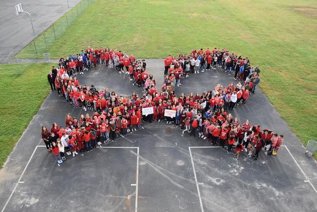 LOMS: Lincoln Orens Middle School’s students and staff members came together to form a red ribbon with an important message.