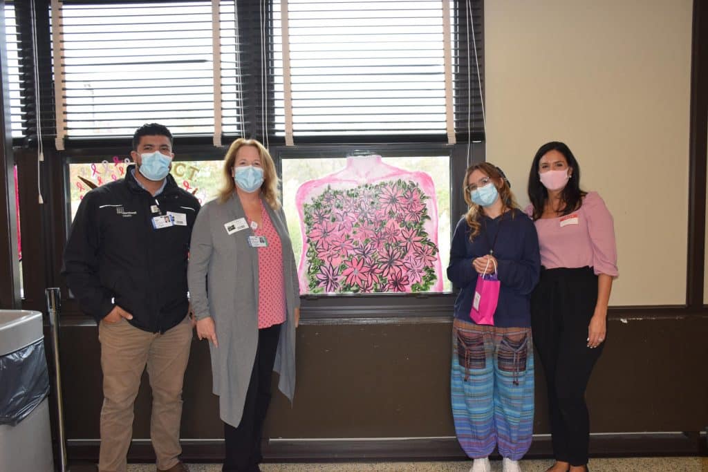 Northwell Health representatives Edgar Cerna, Patti-Lynn Garrett and Nicole Mosca also chose portfolio art student Kaitlyn Trocchio as the winner of the Pink By the Bay window competition. The talents of student-artists from Laura Vogelsberg’s portfolio art class were showcased in several high school windows for students to not only enjoy, but to bring further awareness of this prevalent disease and to support those affected by it. Kaitlyn received a $50 Amazon gift card.