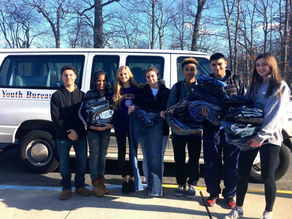 With the help of generous community members, Islip High School’s Junior Chamber of Commerce Club recently collected 300 pairs of denim jeans to donate to the homeless, 20 more than the previous year. Islip joined the annual initiative in 2011 through DoSomething.org’s Teens for Jeans campaign.