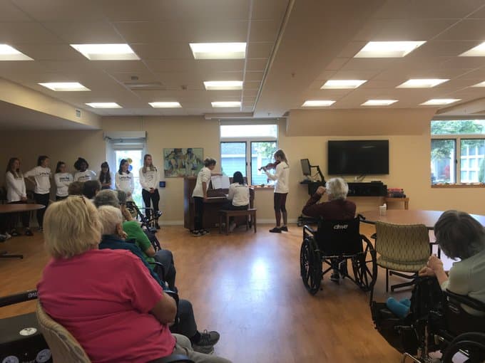 team made a trip to Kendall of Ithaca where these young women sang, played their instruments and danced and then passed out flowers and cookies.
