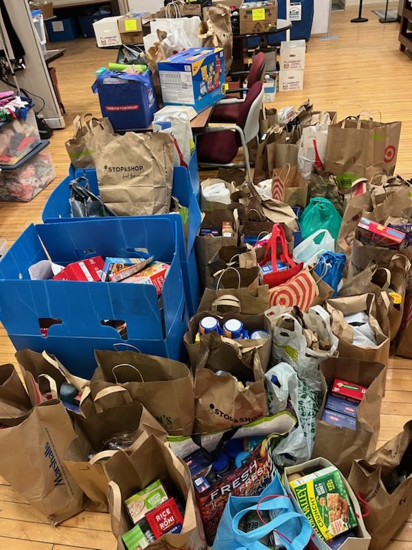 The response was overwhelming. Thanks to the generosity of the Natick community—and strong support from neighboring programs, including Waltham and Newton North—donations poured in throughout the evening. Items collected included pantry staples and essential household goods, ensuring continued support for families in need.
