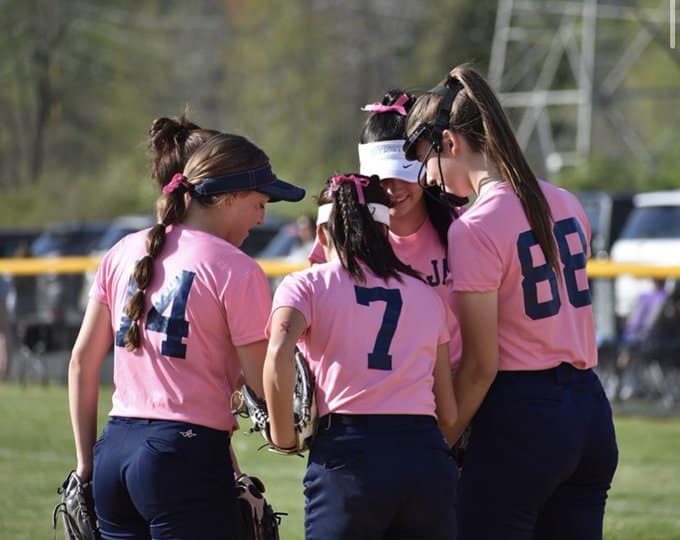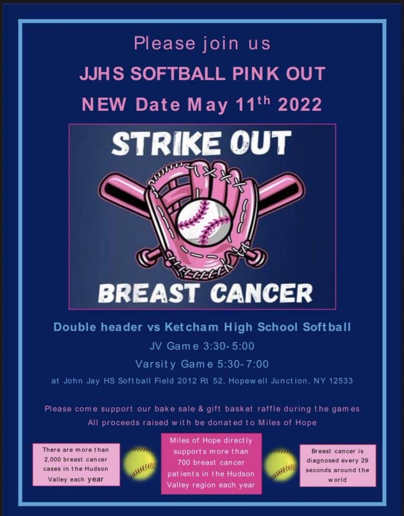 Yesterday both JV and Varsity Teams from John Jay held a pink out even to support Miles for Hope. We played RCK who joined us in the event. Before the game, athletes had the opportunity to recognize a friend or family member who has or is currently battling cancer. It was a very emotional but rewarding experience. Both the JV and varsity teams put together baskets which were raffled off to benefit the cause. In all we were able to raise over $1000 for Miles of Hope. It was a great event with a great turnout. This is something we have been doing for years for both the softball and girls basketball teams at John Jay. We think it’s great for the girls to give back to an important foundation that does so much for our community.